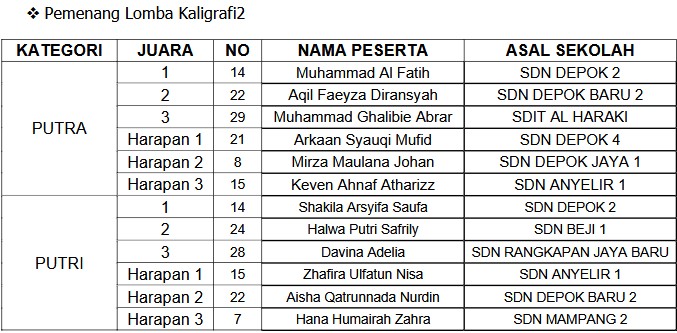 “Apresiasi tertinggi bukan hanya diraih oleh para juara, tetapi juga setiap anak yang berani tampil dan menunjukkan kemampuan terbaiknya. Gelaran ini menjadi tradisi positif yang terus menghidupkan semangat Islami di kalangan generasi muda Depok,” ucap Saefulloh. (*)