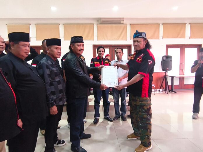 Suasana saat penyerahan SK kepada Ketua DPC GRIB Jaya Depok Ajazih Azis di salah satu rumah makan di bilangan Margonda, Rabu, 17 September 2025. Foto : Arzaquna
