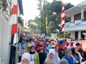 Warga antusias mengikuti Jalan Sehat dalam rangka HUT ke-26 Kota Depok di Kecamatan Sukmajaya pada Minggu, 27 April 2025 . Foto : Arzaquna