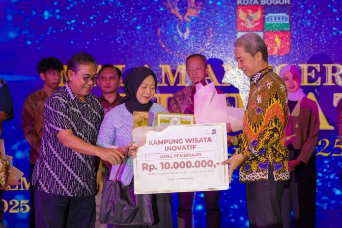 Jabaran.id – kota Bogor : Wali Kota Bogor, Dedie A. Rachim, menyerahkan penghargaan kepada ekosistem kepariwisataan di Kota Bogor pada Malam Anugerah Pariwisata Kota Bogor yang berlangsung di Hotel Onih, 5 Desember 2025 lalu.