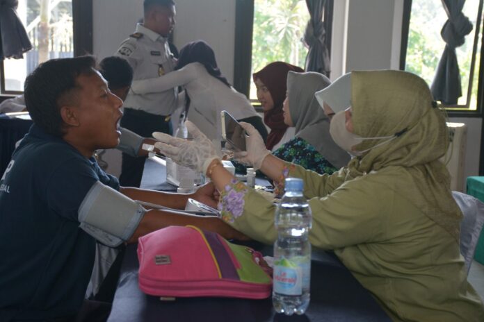 Sebanyak 65 partisipan yang terdiri atas 21 petugas, 25 warga binaan, dan 19 peserta magang menjalani serangkaian prosedur medis, mulai dari skrining tekanan darah hingga pemeriksaan kadar gula darah.